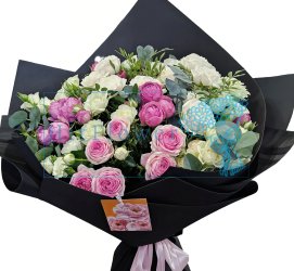 30см 60см Букет цветов из: Хризантемы, Розы и Гвоздики